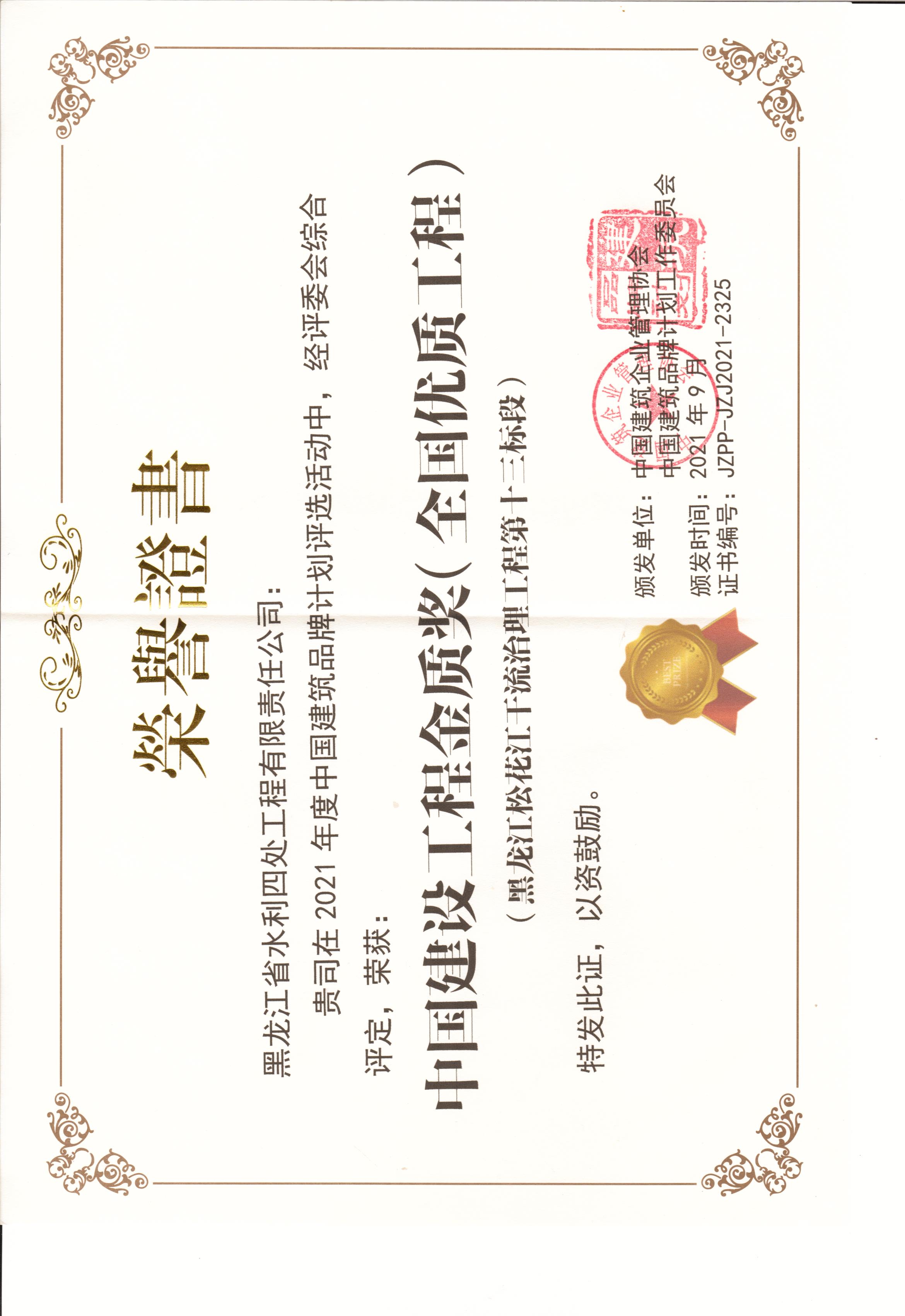 上一篇:黑龍江省優(yōu)質(zhì)工程(龍江杯)獲獎(jiǎng)證書